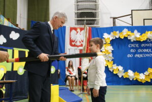 Dnia 24 października 2025 roku odbyło się uroczyste ślubowanie klas pierwszych. To był wyjątkowy dzień. Pierwszoklasiści z naszej szkoły są już pełnoprawnymi uczniami. W niezwykle podniosłej atmosferze ślubowali: „My, uczniowie klas pierwszych uroczyście ślubujemy pilnie się uczyć, wzorowo zachowywać, dbać o dobre imię naszej szkoły.” Po złożeniu ślubowania Pan Dyrektor dokonał symbolicznego pasowania na ucznia wypowiadając zdanie: „Pasuję Cię na ucznia Szkoły Podstawowej nr 4 im. Jana Pawła II” dotykając ołówkiem ramion uczniów. Dowodem pasowania na ucznia było otrzymanie pierwszej legitymacji szkolnej wręczonej rzez dyrekcję szkoły i wychowawców.   Zanim jednak maluchy zostały przyjęte do grona społeczności szkolnej musiały przedstawić to, czego już się w szkole nauczyły. Odświętnie ubrani, bardzo przejęci przystąpili do zaprezentowania swoich umiejętności. Zadaniem uczniów było m.in. udział w konkurencjach sportowych, wspólne śpiewanie piosenki, recytacja wiersza oraz udzielanie odpowiedzi na szereg bardzo ważnych pytań. Wszystkie zadanie wykonali celująco. Ślubowanie uczniów klas pierwszych to bardzo ważne wydarzenie nie