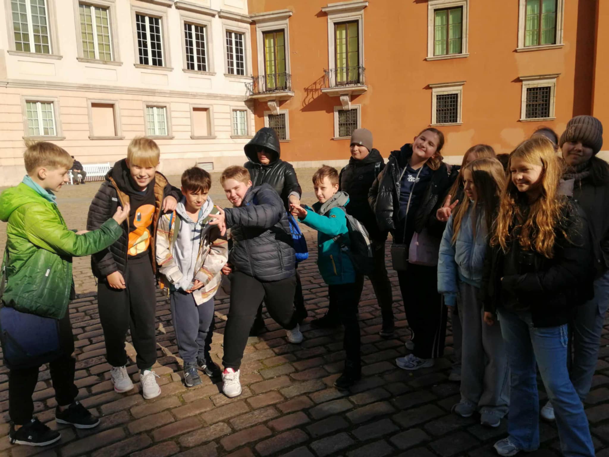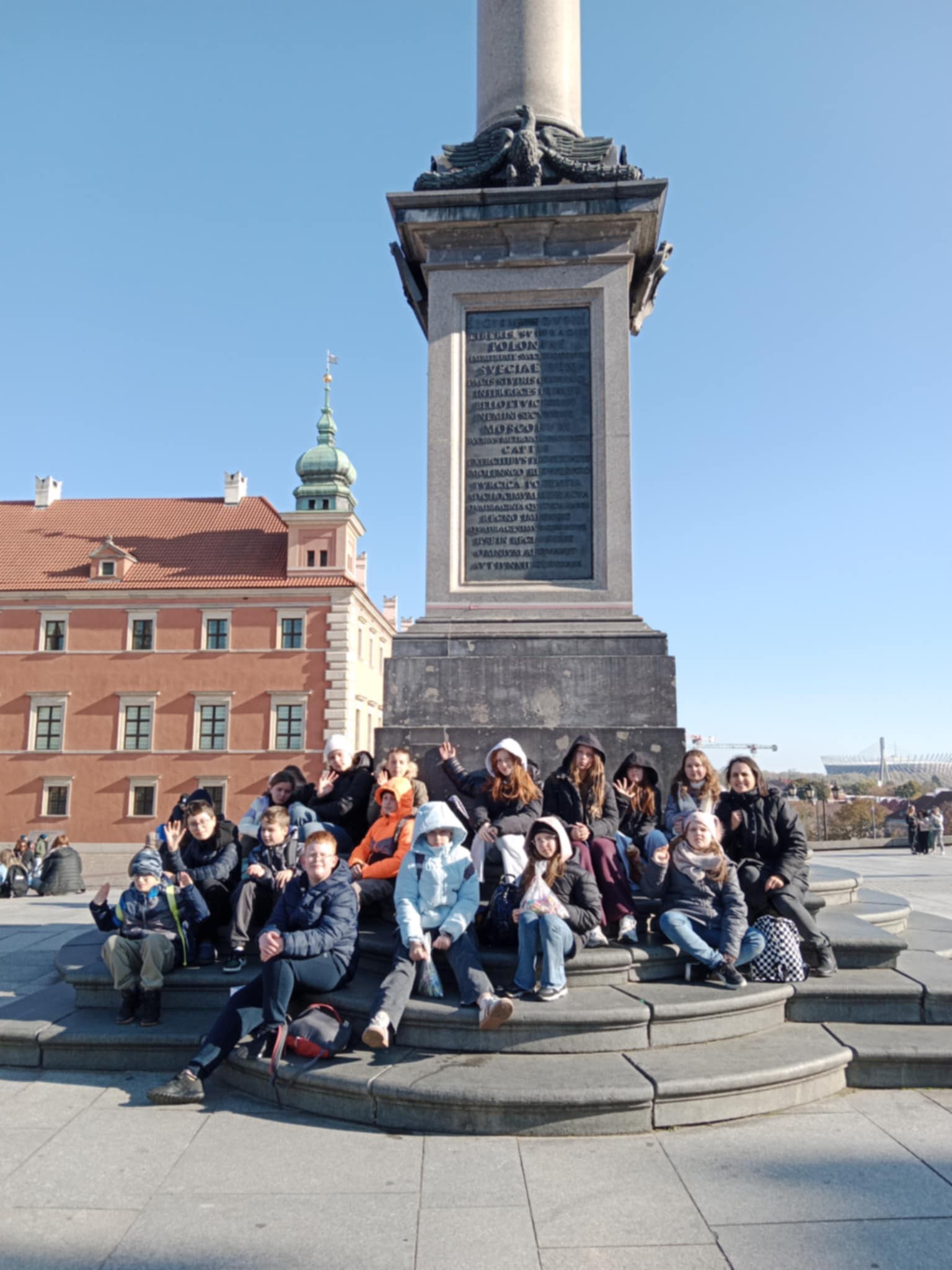 21 października uczniowie klas V kolejny raz wspólnie spędzili czas. Wycieczkę rozpoczęli wizytą w Manufakturze Cukierków, gdzie wzięli udział w warsztatach edukacyjnych i samodzielnie wykonali kolorowe lizaki. Kolejnym bardzo ciekawym punktem wycieczki był spacer ulicami Starego Miasta wraz z przewodnikiem. Pan Sławek z wielką pasją opowiadał uczniom o najciekawszych zabytkach naszej stolicy. Zobaczyliśmy Kolumnę Zygmunta, Warszawską Syrenkę, Zamek Króleski, Pomnik Małego Powstańca, Barbakan i średniowieczne mury obronne, Plac Marszałka Józefa Piłsudskiego, Grób Nieznanego Żołnierza oraz siedzibę Prezydenta RP. Ogromne wrażenie na uczniach zrobił Stadion Narodowy. Kolejną atrakcją była wizyta w Centrum Nauki Kopernik, gdzie uczniowie mieli możliwość doświadczenia nauki przez zabawę. Zmęczeni, ale bardzo zadowoleni w godzinach wieczornych wrócili do domu. Zapraszamy do galerii zdjęć: