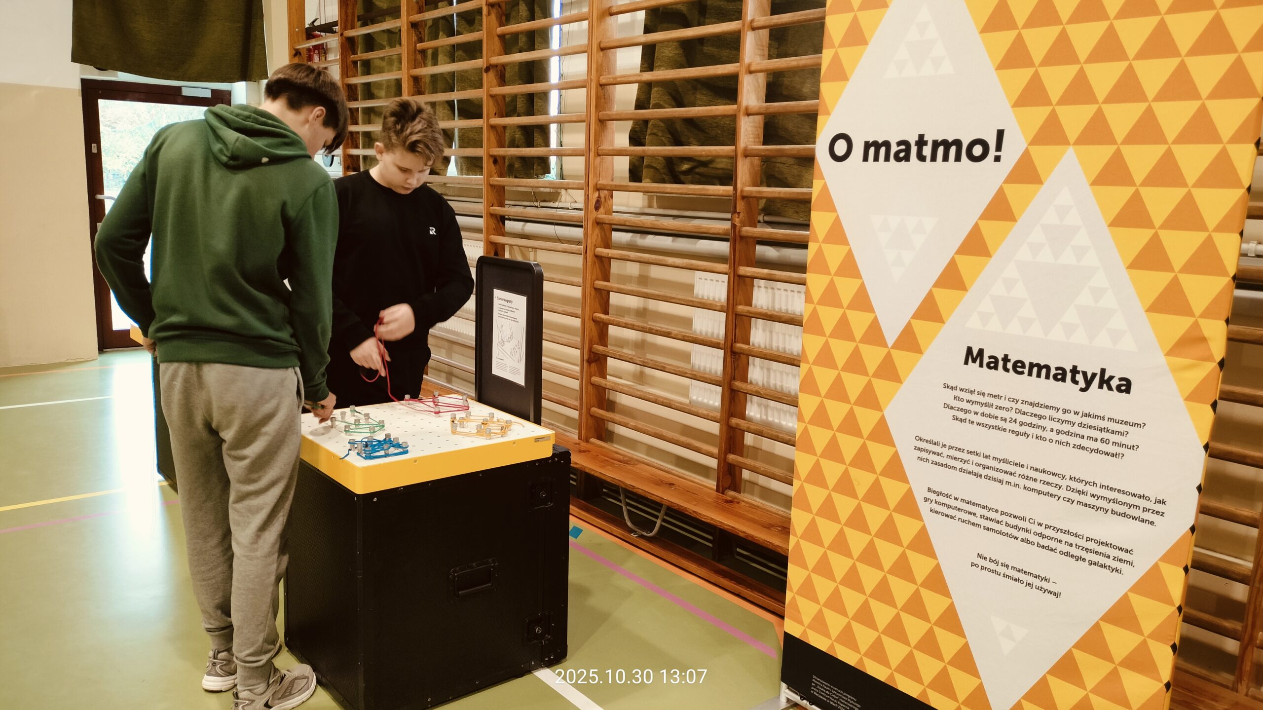W minionym tygodniu uczniowie naszej szkoły mieli wyjątkową okazję przekonać się, że matematyka może być nie tylko nauką o liczbach i wzorach, ale też pasjonującą przygodą pełną odkryć i zabawy. Wszystko za sprawą mobilnej wystawy „O matmo!”, przygotowanej przez Centrum Nauki Kopernik.