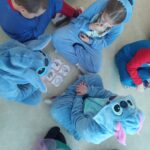 puzzle przedstawiające bohaterów bajek. Na zakończenie każda klasa pozowała