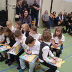 Zanim jednak maluchy zostały przyjęte do grona społeczności szkolnej musiały przedstawić to, czego już się w szkole nauczyły. Odświętnie ubrani, bardzo przejęci przystąpili do zaprezentowania swoich umiejętności. Zadaniem uczniów było m.in. udział w konkurencjach sportowych, wspólne śpiewanie piosenki, recytacja wiersza oraz udzielanie odpowiedzi na szereg bardzo ważnych pytań. Wszystkie zadanie wykonali celująco. Ślubowanie uczniów klas pierwszych to bardzo ważne wydarzenie nie tylko dla najmłodszych, ale również dla ich rodziców i bliskich. Z tej okazji rodzice ufundowali książki i drobne upominki .Ten dzień na długo pozostanie w pamięci nas wszystkich.