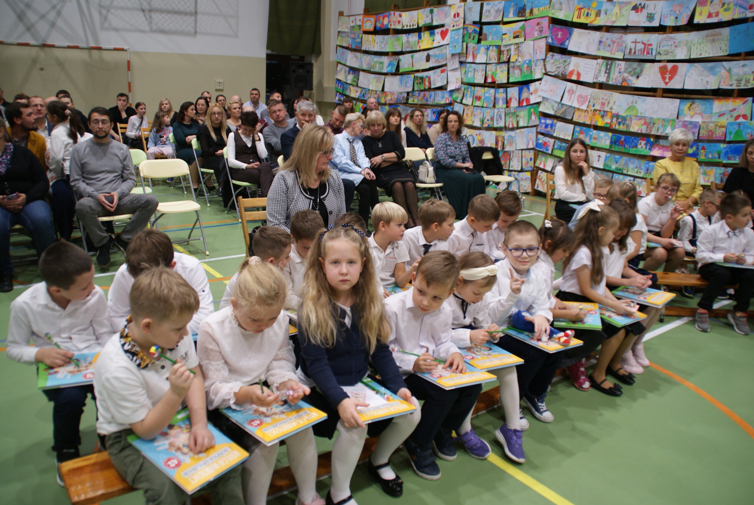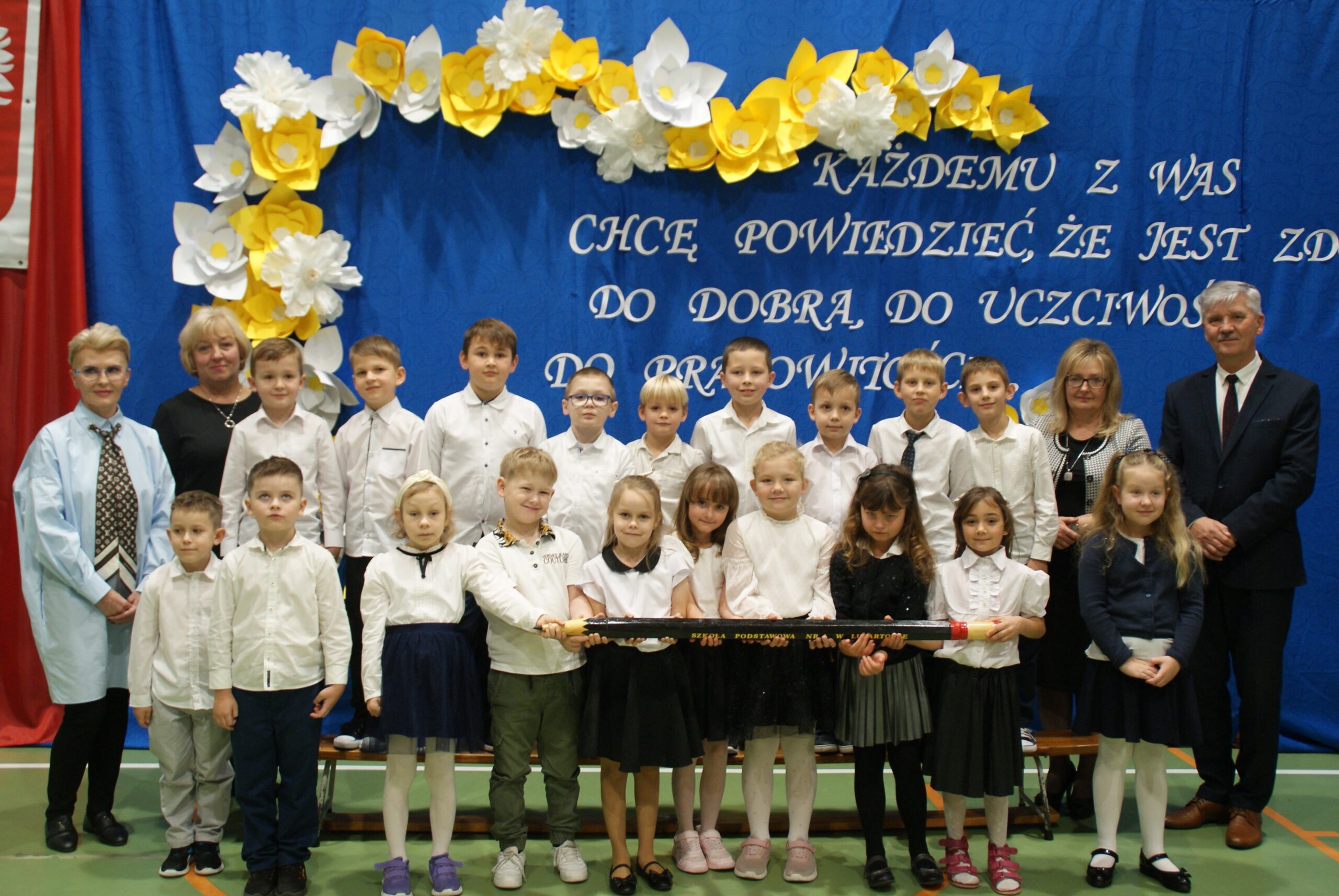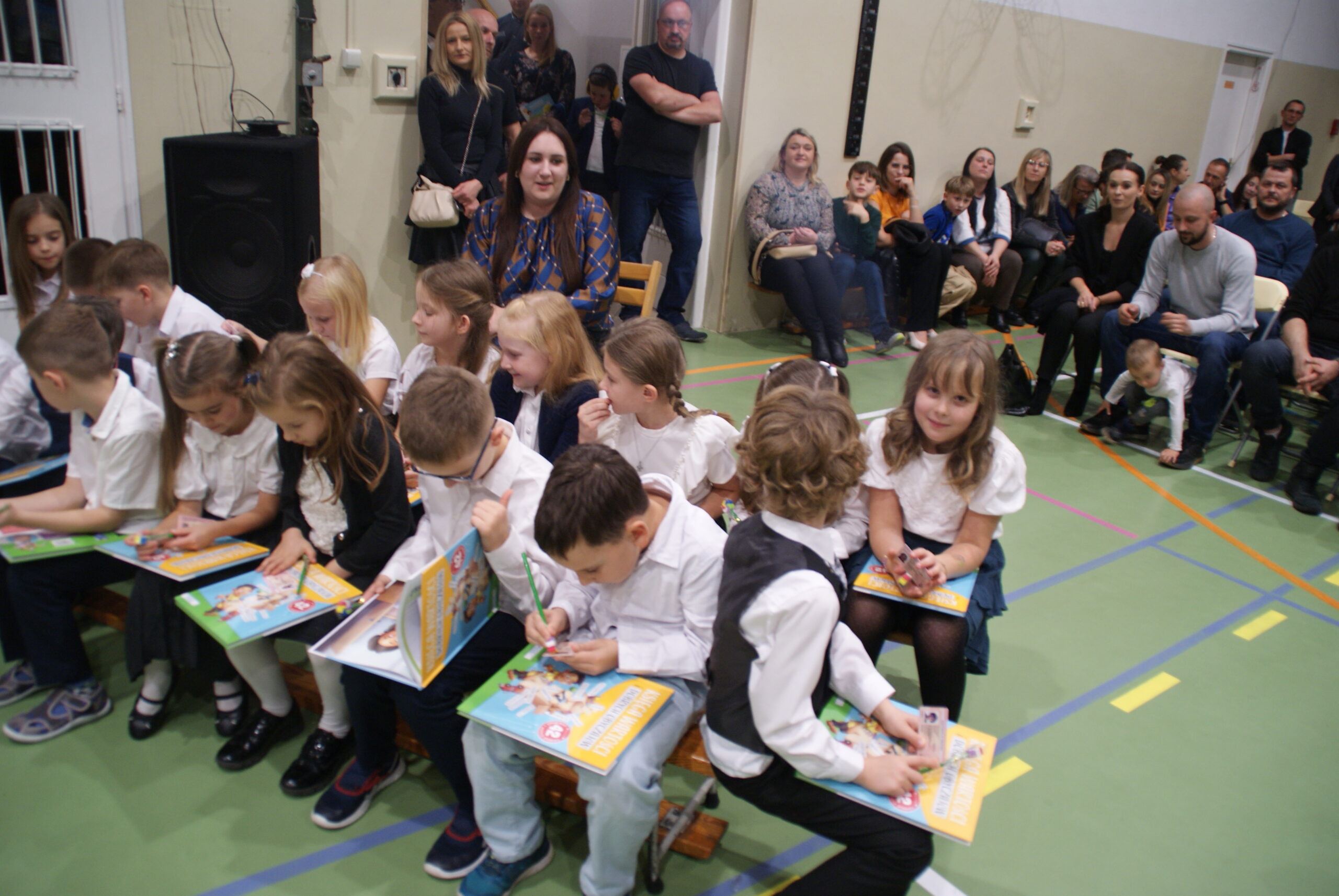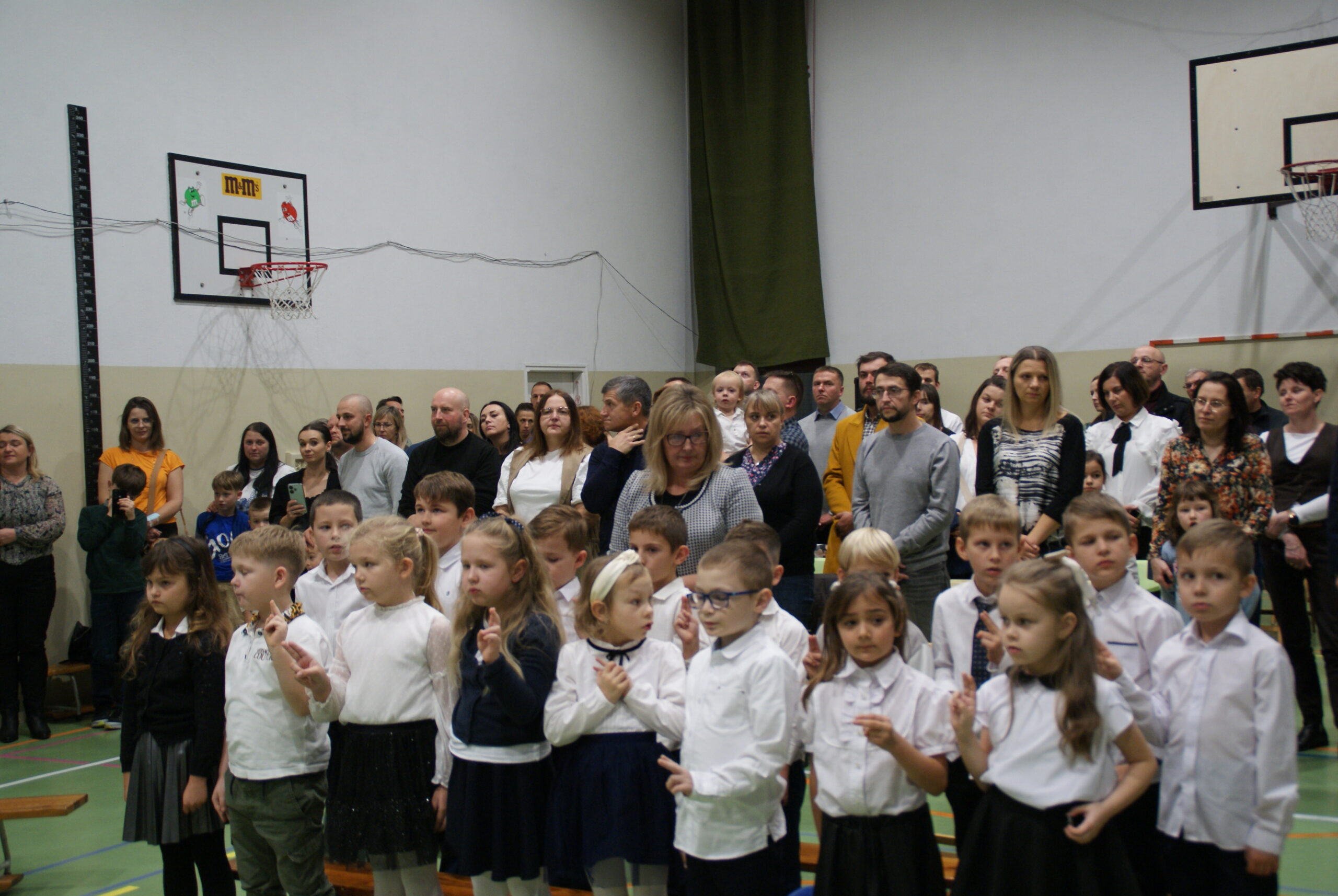 Zanim jednak maluchy zostały przyjęte do grona społeczności szkolnej musiały przedstawić to, czego już się w szkole nauczyły. Odświętnie ubrani, bardzo przejęci przystąpili do zaprezentowania swoich umiejętności. Zadaniem uczniów było m.in. udział w konkurencjach sportowych, wspólne śpiewanie piosenki, recytacja wiersza oraz udzielanie odpowiedzi na szereg bardzo ważnych pytań. Wszystkie zadanie wykonali celująco. Ślubowanie uczniów klas pierwszych to bardzo ważne wydarzenie nie tylko dla najmłodszych, ale również dla ich rodziców i bliskich. Z tej okazji rodzice ufundowali książki i drobne upominki .Ten dzień na długo pozostanie w pamięci nas wszystkich.